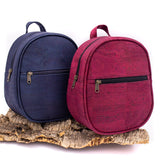 Le sac à dos pour filles en liège bleu marine et rouge vin possède une poche zippée pour votre téléphone et vos clés à l'extérieur et assure la sécurité, il est fabriqué à partir de liège de couleur de haute qualité qui est écologique et étanche.