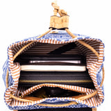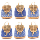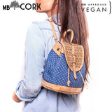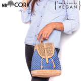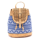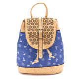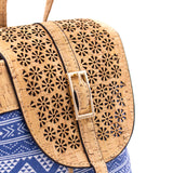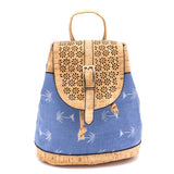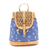 Cork laser cutting cork with Blue Textile women backpack OY-005-Radom