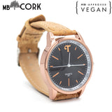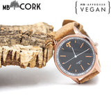An amazingly beautiful watch with a natural cork strap with a simple but yet classy design.