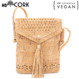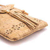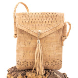 Laser cut crossbody natural cork girls phone bag with tassel BAG-605