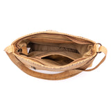 Un sac à main en liège structuré avec 2 sangles en liège avec fermeture à glissière, poche extérieure zippée. poche intérieure zippée et un beau motif.