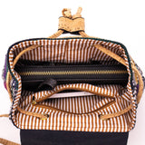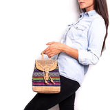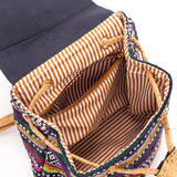 Sac à dos en tissu brodé dans un imprimé coloré minimaliste.